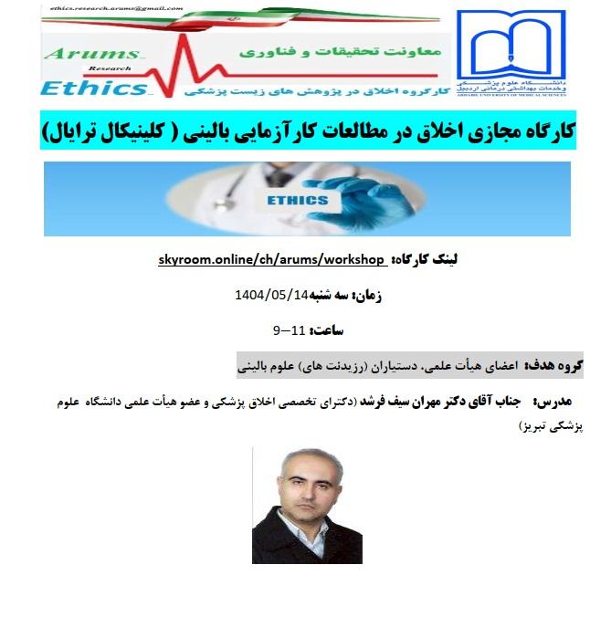 کارگاه اخلاق در مطالعات کار آزمایی بالینی ۰۷ مرداد ۱۴۰۴ | ۰۶:۱۶ کد : ۳۸۴۷۱ کارگاه ها ارسال به دیگران نام شما ایمیل شما ایمیل دریافتکننده ارسال انصراف تعداد بازدید:۶
