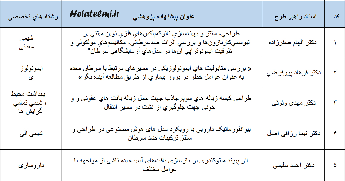 • ارائه طرح پژوهشی مطابق با عنوان پیشنهاده مربوطه از کد انتخابی؛ مطابق با قالب مربوطه